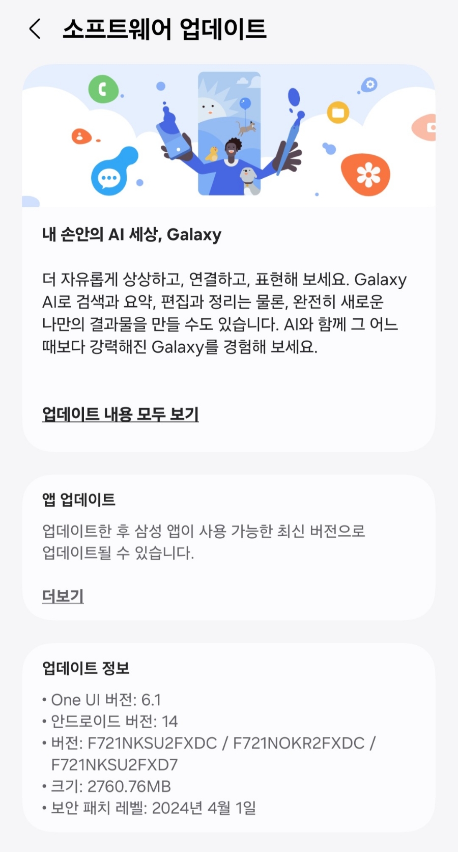 어제 삼성 갤럭시 소프트웨어 업데이트에 성공했습니다.