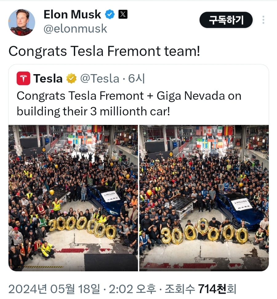 이상으로 2024. 5. 19. (금) X로 보는 테슬라 소식을 마치도록 하겠습니다^^