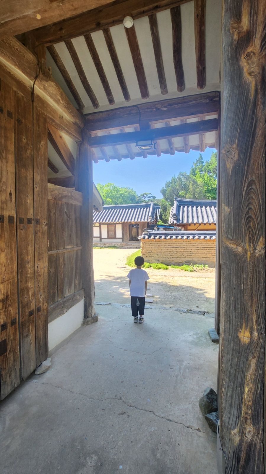 대문 앞에 서 있는 둘째의 모습과 커다란 대문이 대비를 이루네요 ㅎㅎㅎ