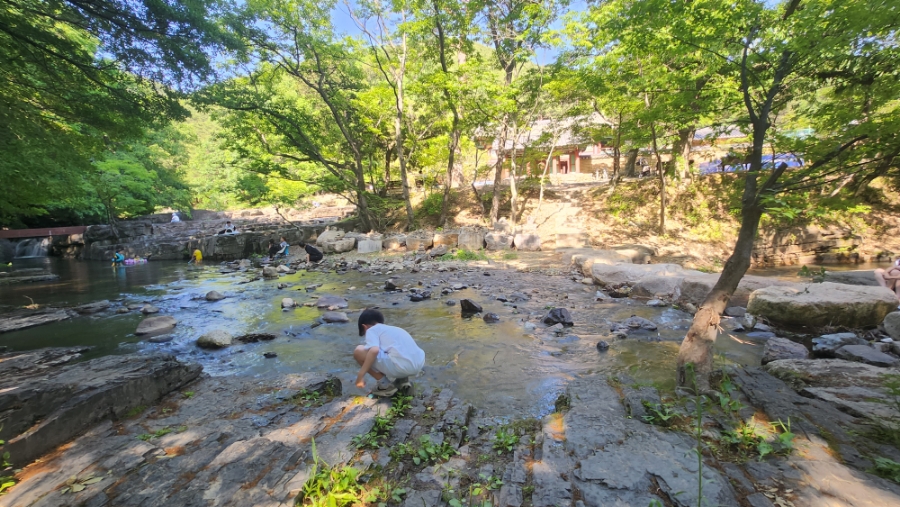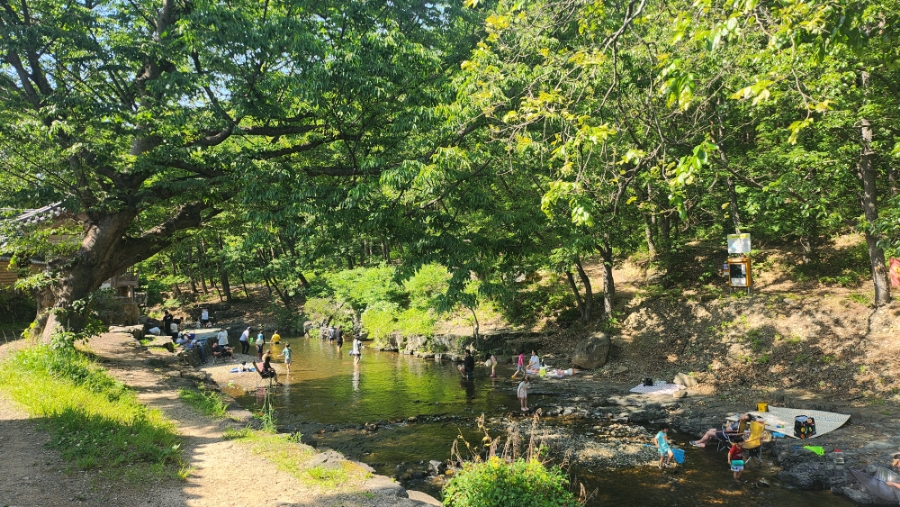 독락당 뒷 편에 이런 계곡이 있었는데요... 가족 단위로 즐겁게 물놀이를 하고 있었습니다. 아직 사람들이 많이 몰리지 않아서... 놀기 딱 좋아 보이더군요
