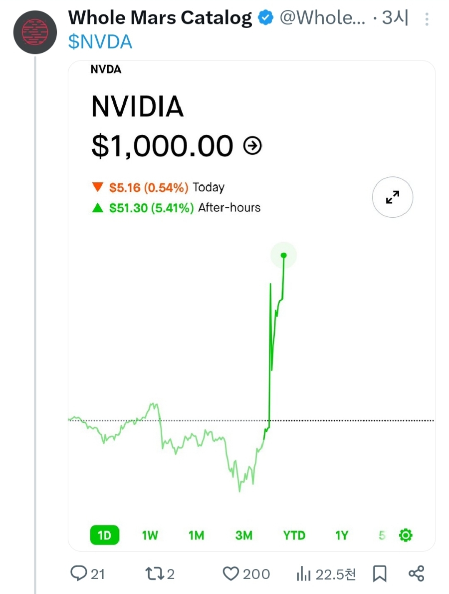 엔비디아 대단하네요!! 실적 어닝 서프라이즈에다가 10:1 분할 소식까지!!