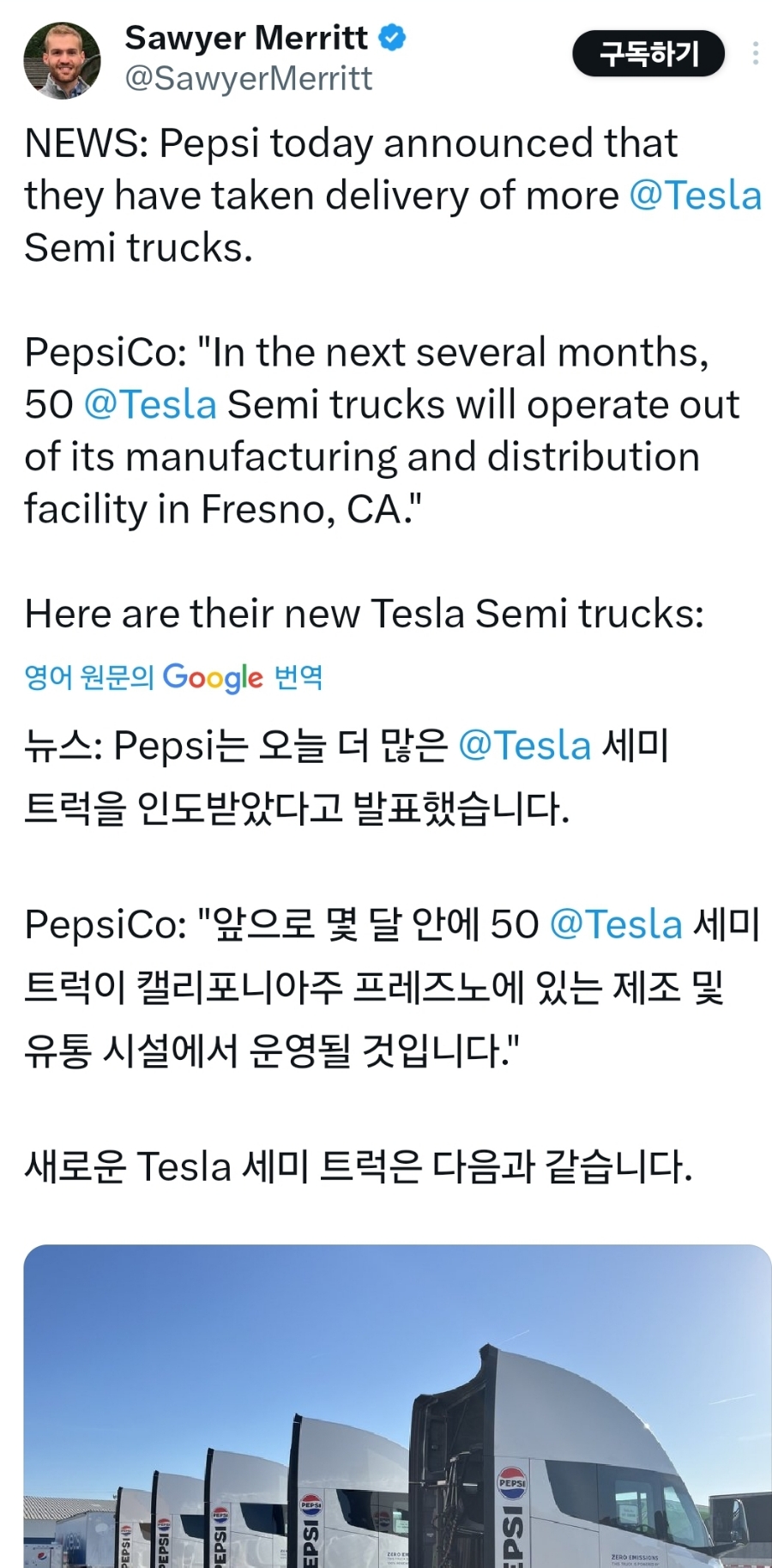 세미 트럭과 관련하여 좋은 소식이 계속 들려오네요