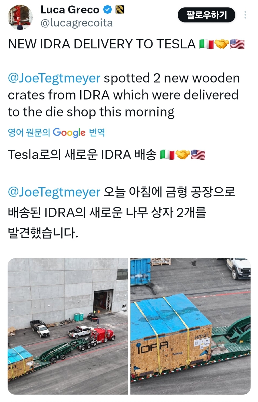 테슬라 공장으로 새로운 나무 상자 2개가 배송이 되었는데요... 사이즈가 대단합니다.