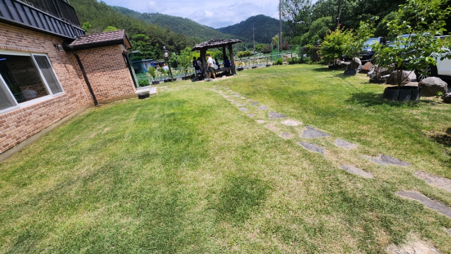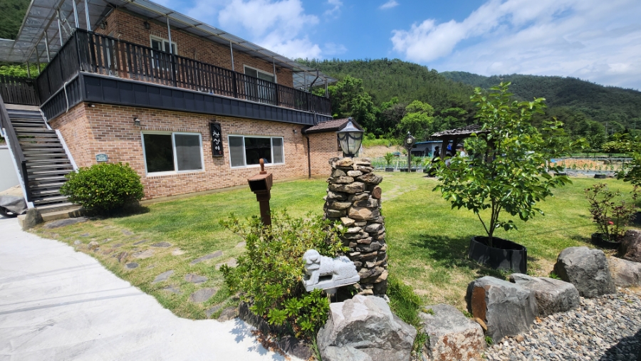 정원 앞에는 원두막처럼 앉아서 쉴 수 있는 공간이 있어요