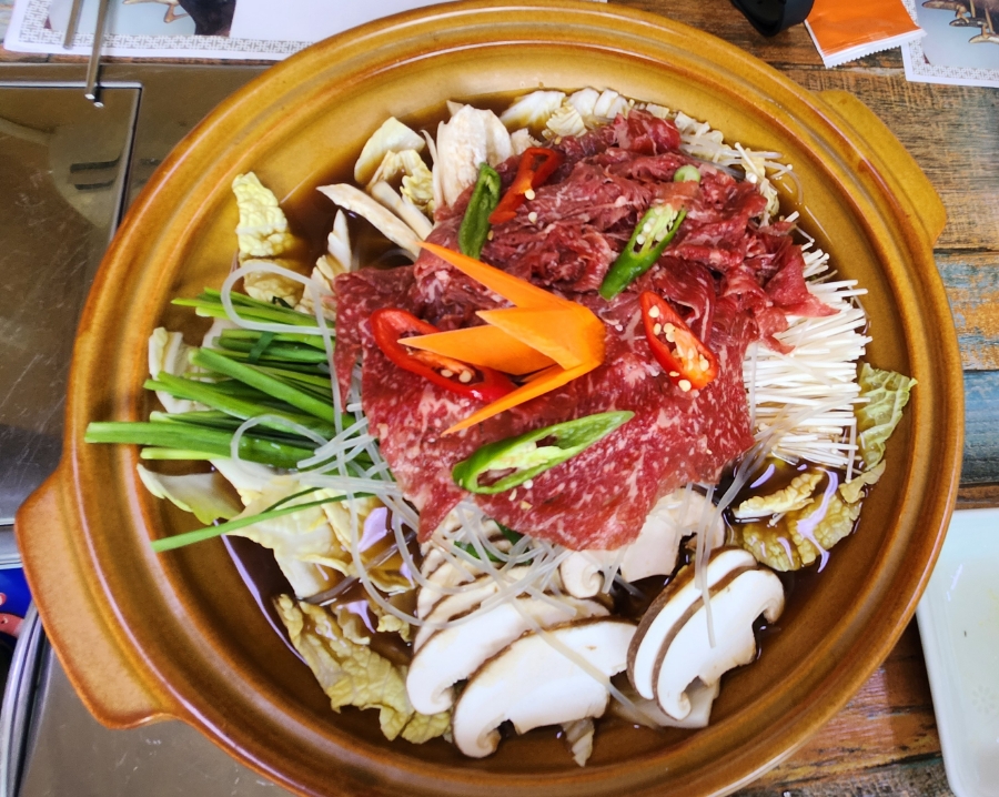 한우 버섯전골 끊이기 전 사진인데요. 무엇보다 다양한 버섯과 야채들이 가득 들어있어서 맛이 기대가 되었는데요. 아쉽게도 다 끓이고 나서 사진이 빠졌는데 정말 국물이 맛있었습니다. 들어간 고기 및 각종 야채들의 퀄리티가 높다 보니 끓어져 나온 육수의 맛이 정말 진국이었습니다. 밥 한 공기 더 시키고 싶었습니다!! 정말 맛있었어요 ㅎ