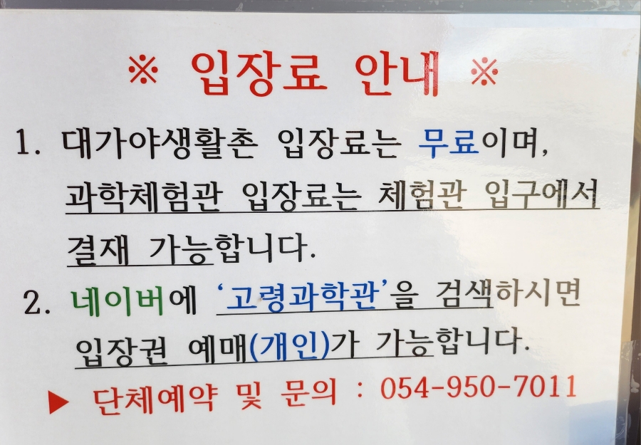 생활촌 안에 위치하고 있는 고령 과학관은 유료이며, 입장권 예매를 통해 입장이 가능하다고 하네요
