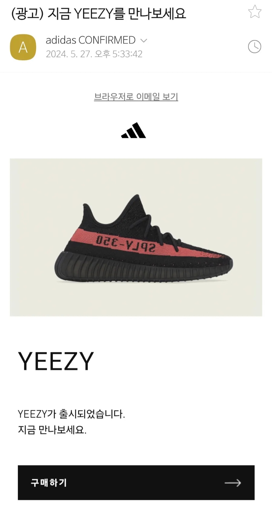 이메일을 열어보다가 아디다스 confirmed에서 온 메일을 확인하였습니다!!
