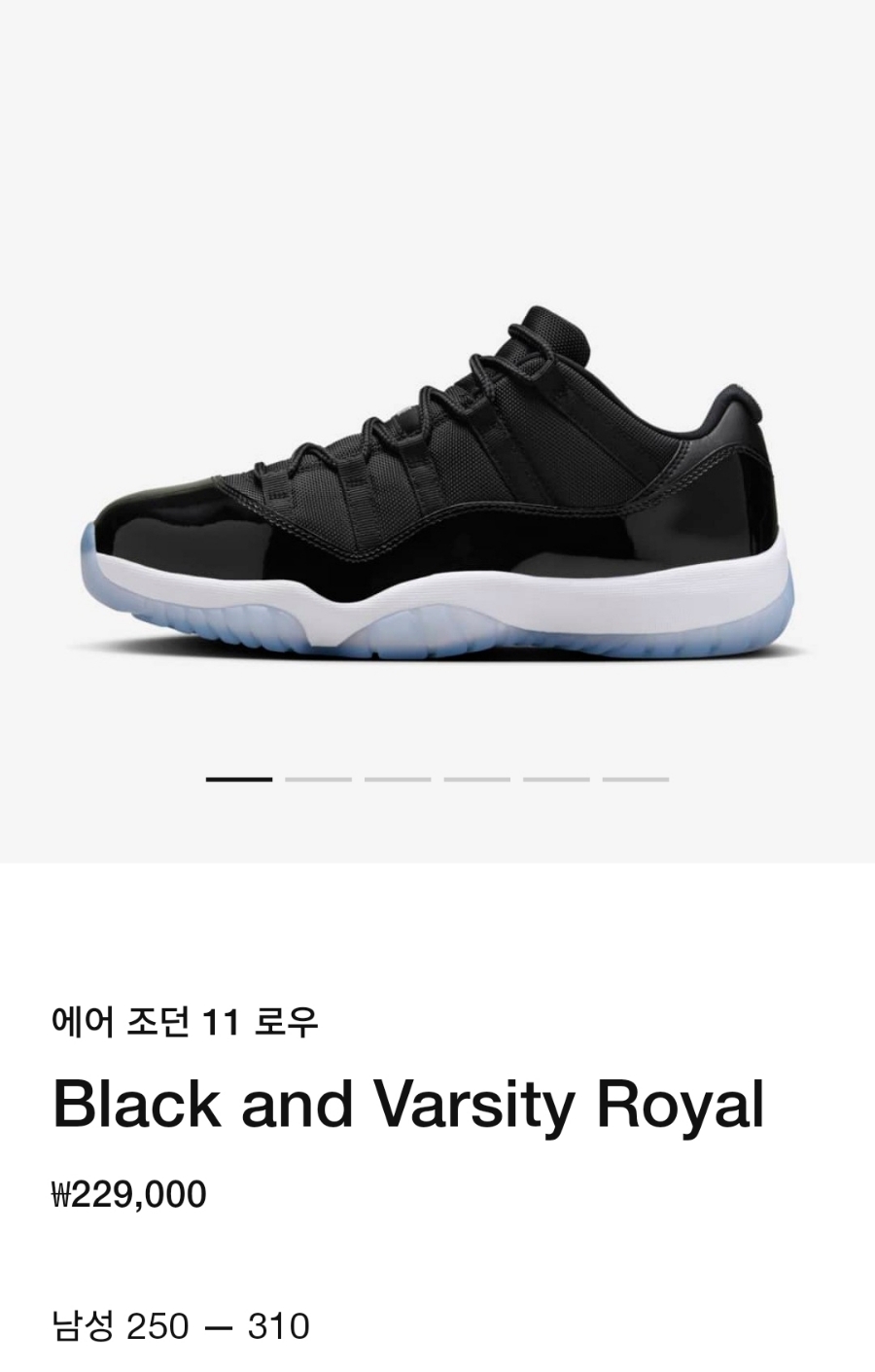 나이키 스니커즈 추천 에어조던 11 로우 Black and Varsity Royal