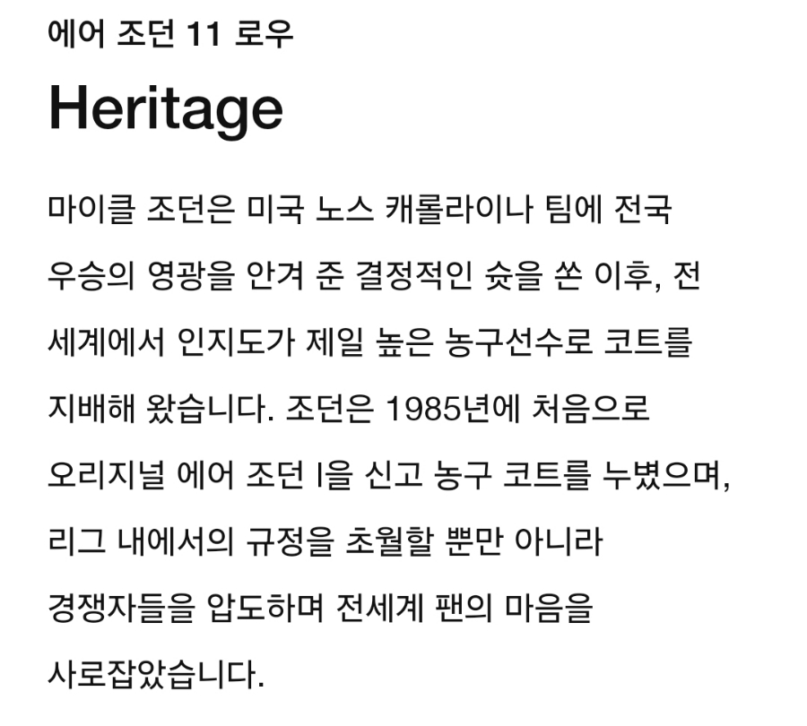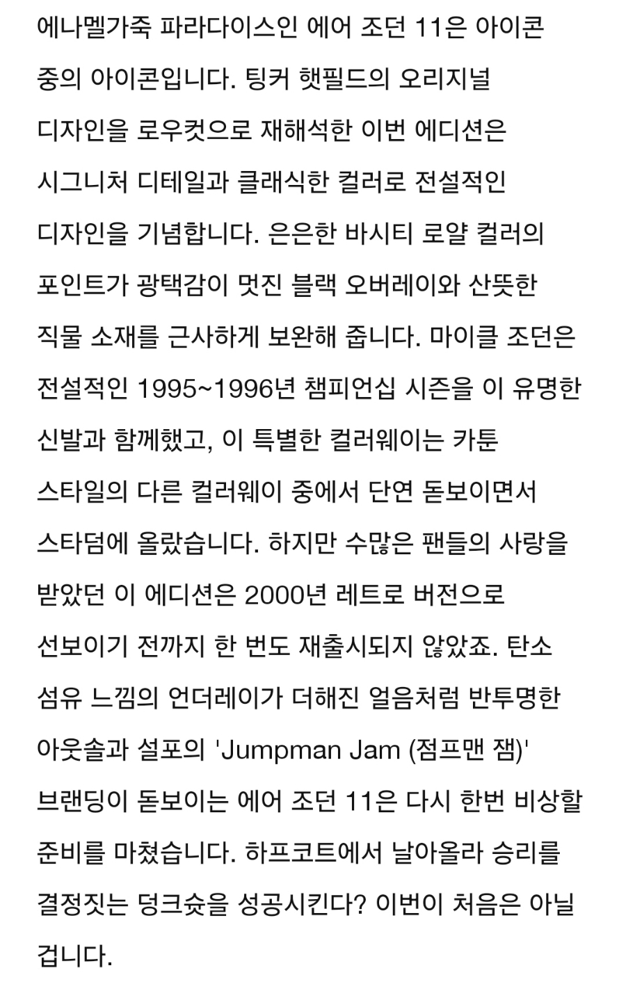 그리고 마이클 조던이 1995~1996년 챔피언십 시즌을 이 스니커즈와 함께 했다고 하네요!!