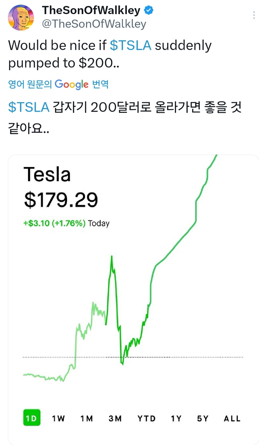 갑자기 테슬라 주가가 반등을 하였습니다.