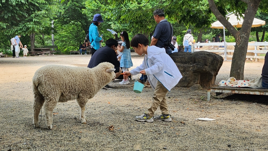 두 아이들은 양에게 당근 먹이 주느라 정신이 없었어요 ㅎㅎ
