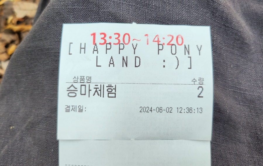 성인 입장료 1매 + 승마체험 2매 발권하고 추가 당근 먹이를 구매했습니다.