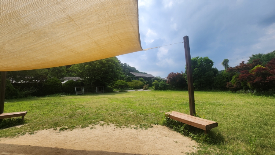 승마체험을 기다리면서 햇빛을 피할 수 있는 공간이었습니다.