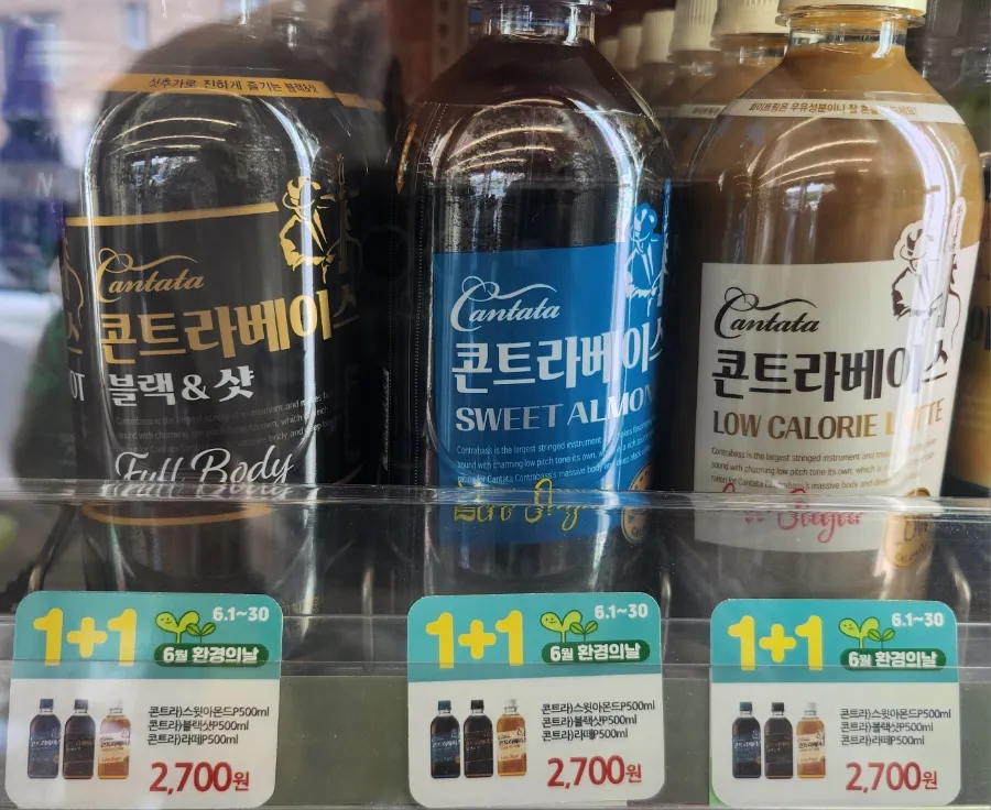 우연히 들른 편의점의 1 + 1 행사 음료를 올려봅니다.