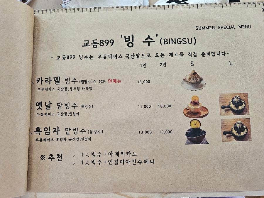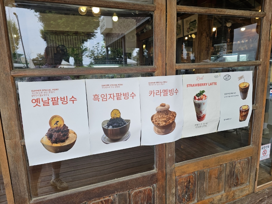 옛날 팥빙수, 흑임자 팥빙수, 캐러멜 빙수 등 다양한 빙수를 판매하고 있었습니다.