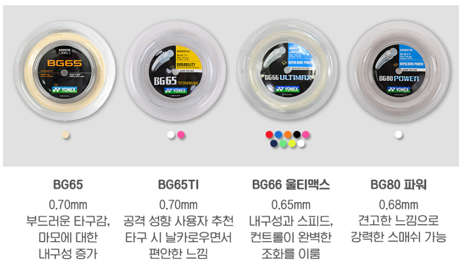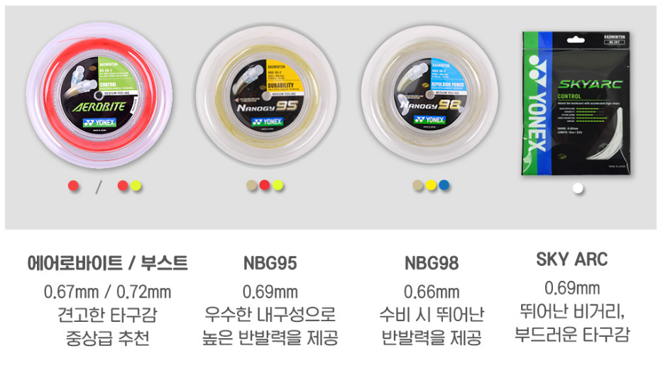 배드민턴 브랜드 1위답게 스트링도 요넥스 제품을 많이 사용하고 있는데요.