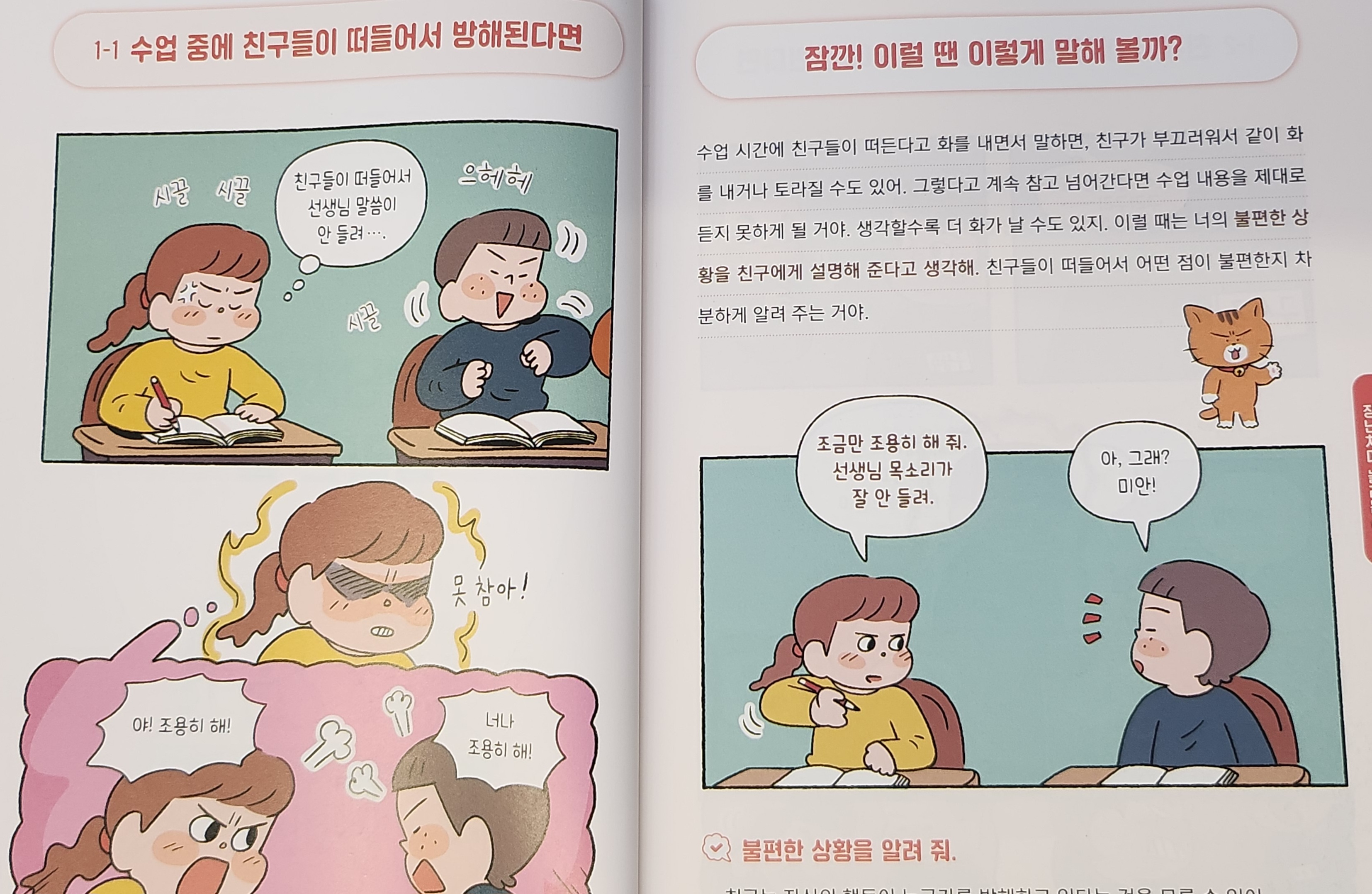 상황별로 잘못된 문제상황이 제시가 되고 어떻게 수정을 해서 말을 해야할지 만화형식으로 아주 잘 제시되어있습니다^^