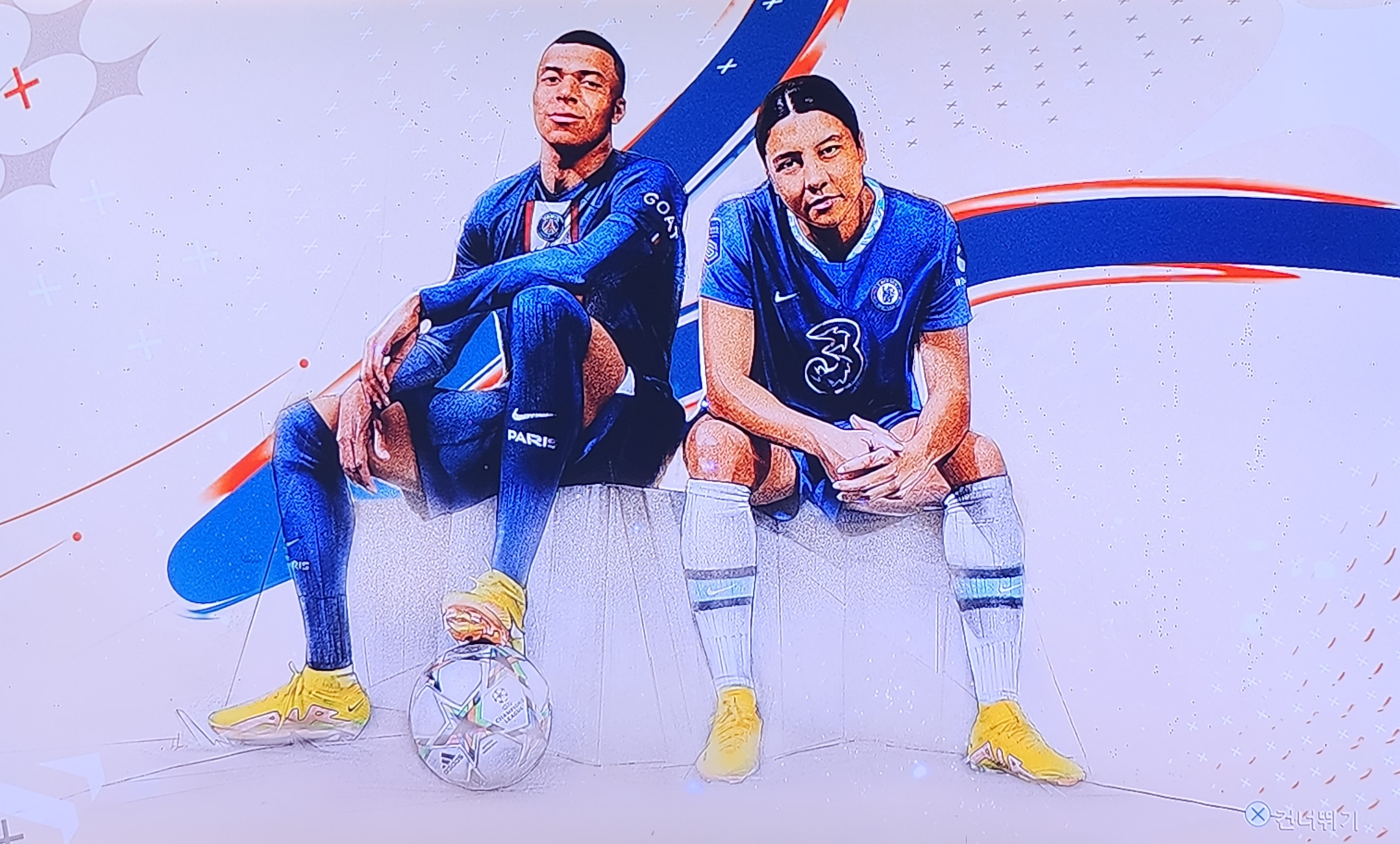 피파23 fifa23 첫화면인데요 음바페랑 여자축구선수 메인이네요(여자선수는 이름을 몰라서ㅜㅜ)