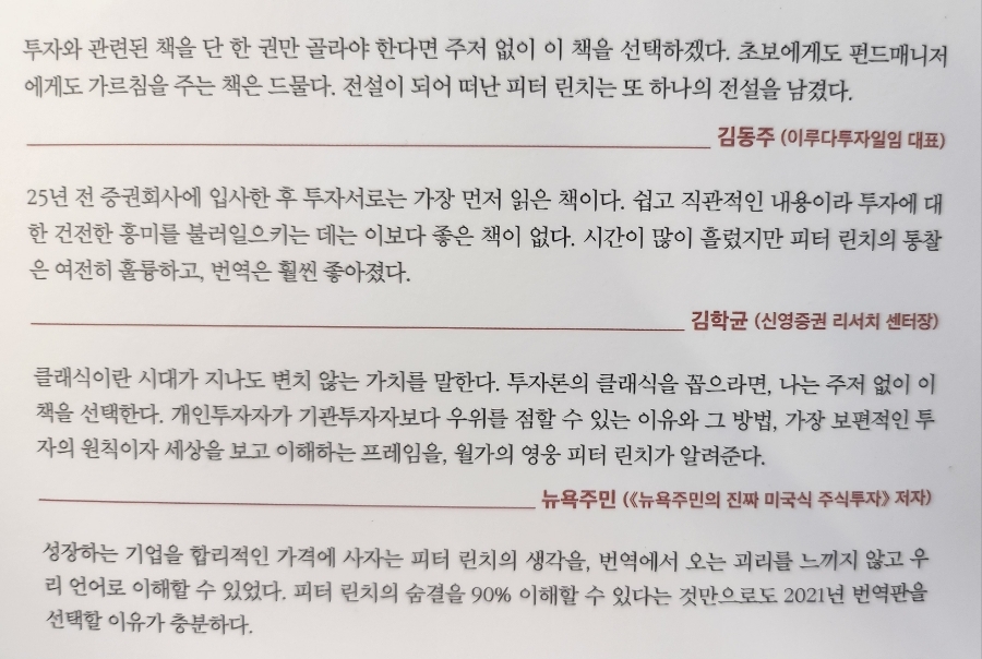 다 아시죠? 피터린치라는 전설적인 투자가가 쓰신 국내 번역본인 책...
