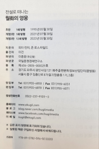 이 "전설로 떠나는 월가의 영웅" 책이 교보문고 울산점 기준으로 일시품절이 되었다가 오늘 2권 입고....내일 7권이 더 들어온다고 하더군요 ㅎㅎ