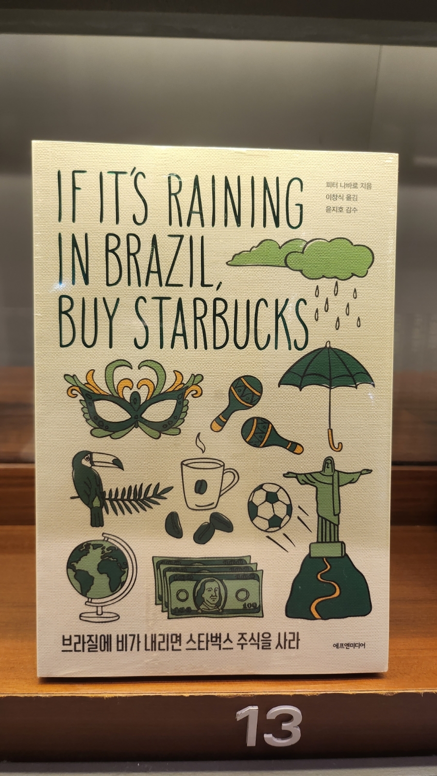 전 개인적으로 이 "브라질에 비가 내리면 스타벅스 주식을 사라"라는 책을 한 번 읽어 보고 싶더라구요. 주식 투자의 식견과 노하우를 얻을 수 있을 것만 같았구요...사실 책 표지가 넘 귀여웠습니다. ㅎㅎ