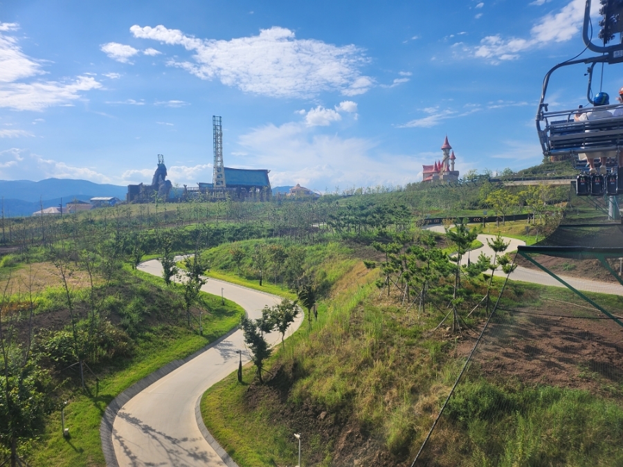아래로는 루지 타고 내려오는 코스가 눈에 들어옵니다.