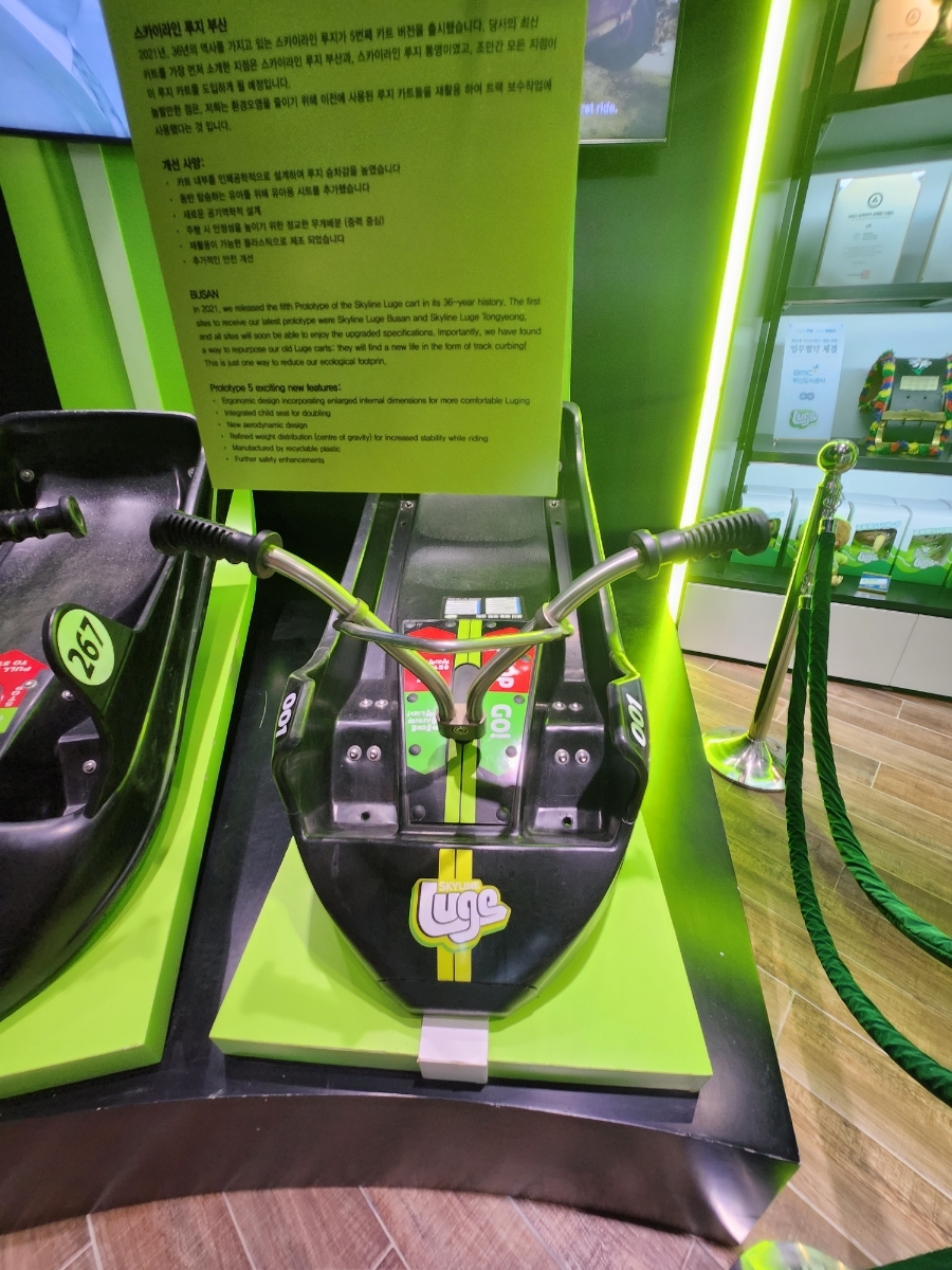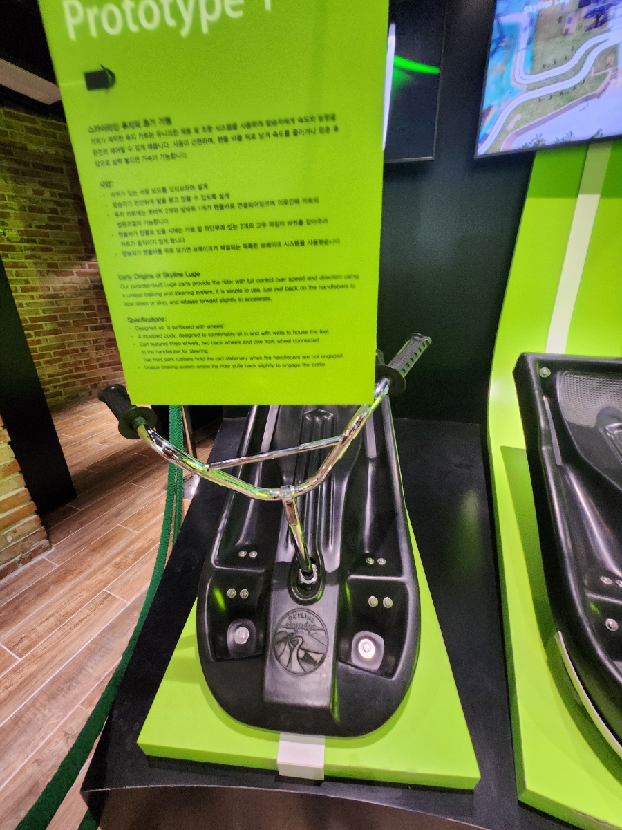 저는 샵 안쪽에 전시되어 있는 루지의 변천사(?) 1세대 루지부터 현재 5세대 루지까지 전시가 되어 있었는데....재미있었습니다. 저희 둘째는 저 가운데 3세대 파란 루지 타고 싶다고 내놓라는데....저건 여기 없어 ㅠㅡㅠ