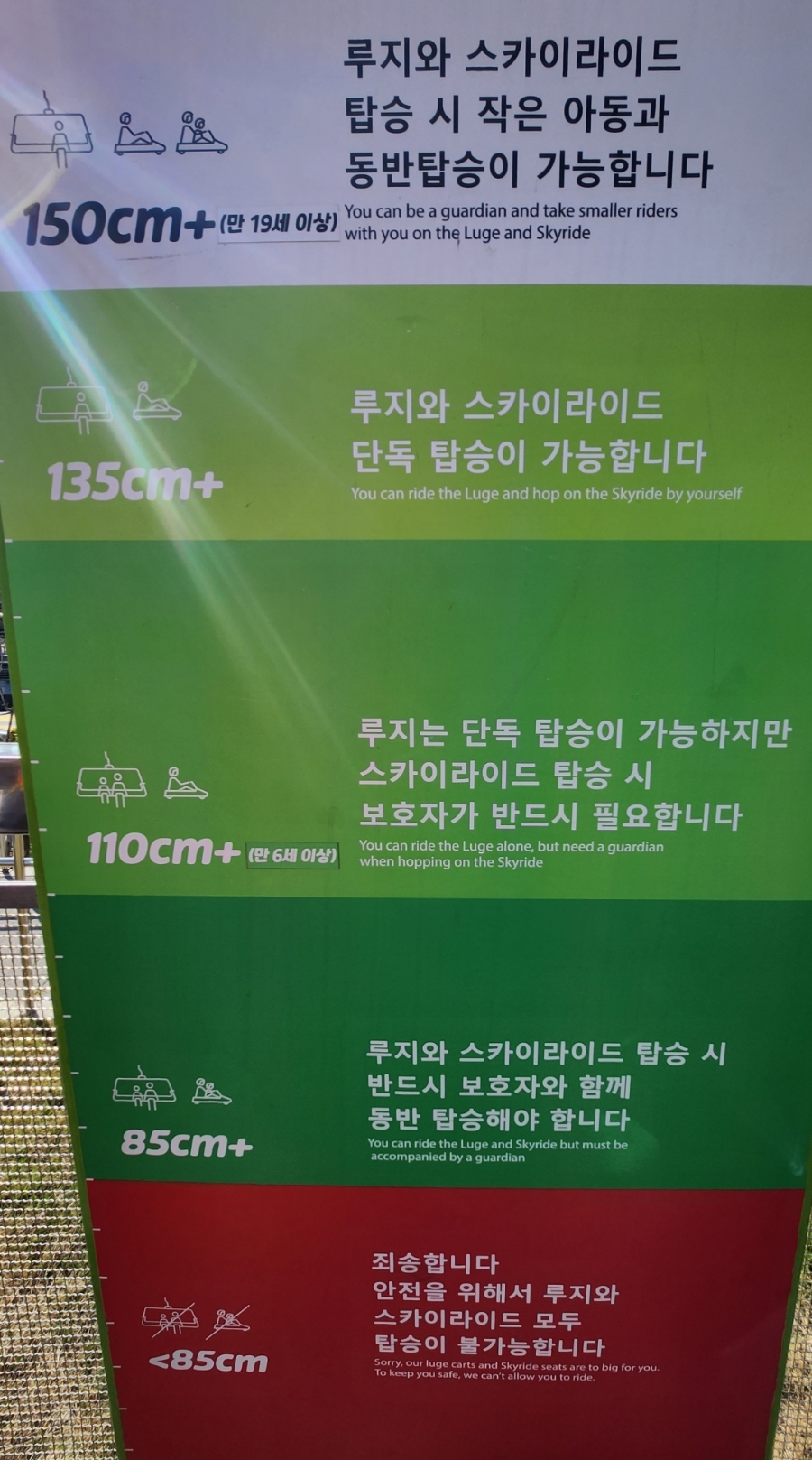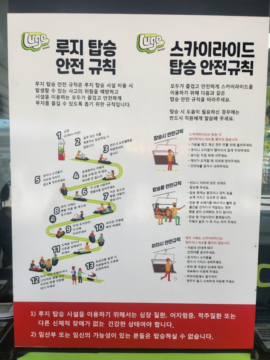 가장 중요한 루지 탑승 안전 규칙 및 스카이라이드 탑승 규칙은 크게 확대해서 한번 봐보시면 좋을 듯 합니다^^