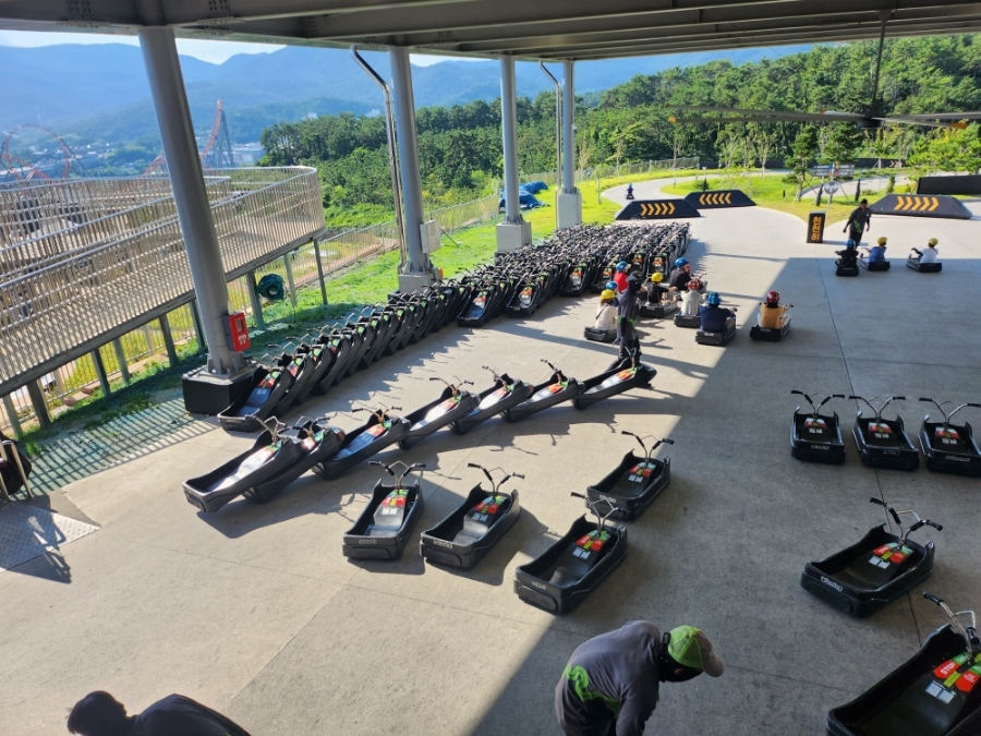 스키장에서는 스키, 보드를 각자 챙겨야 했는데...루지는 스카이라이드에 직원분들이 알아서 달아주시니 신경 안쓰셔도 됩니다 ㅎㅎ