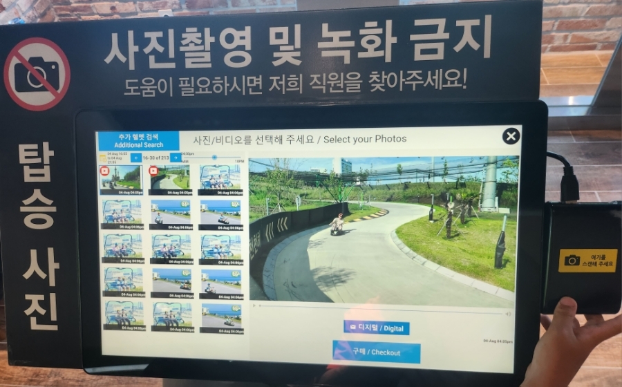 내려와서 장치에 헬멧을 갖다대면 자신의 모습이 사진, 동영상으로 확인 할 수 있답니다. 당연히 구입 비용이 발생하겠죠??