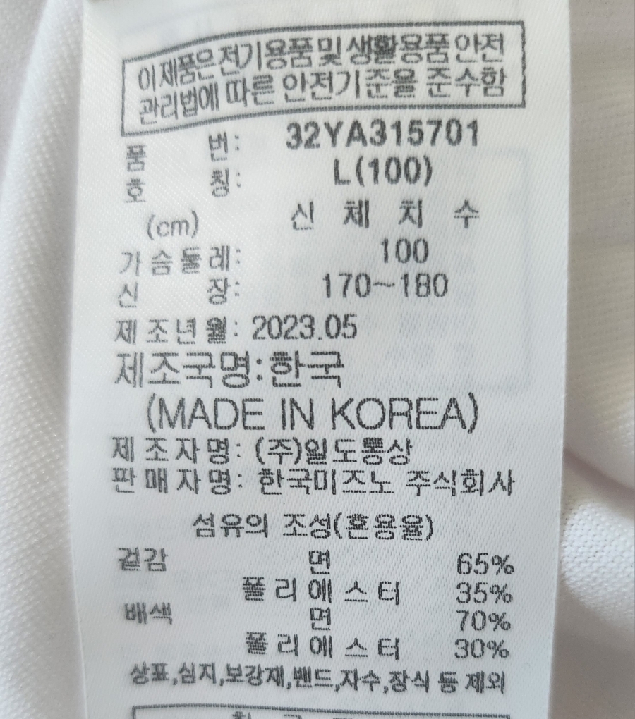이번에 구입한 제품은 95를 입었을 때, 딱 JUST 였어요... 조금 작아보이기도 해서 L 100사이즈로 선택을 했습니다.