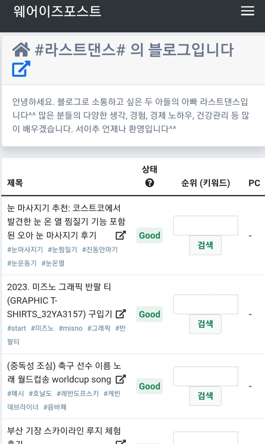 웨어이즈포스트 - 블로그 검색 노출 누락 확인