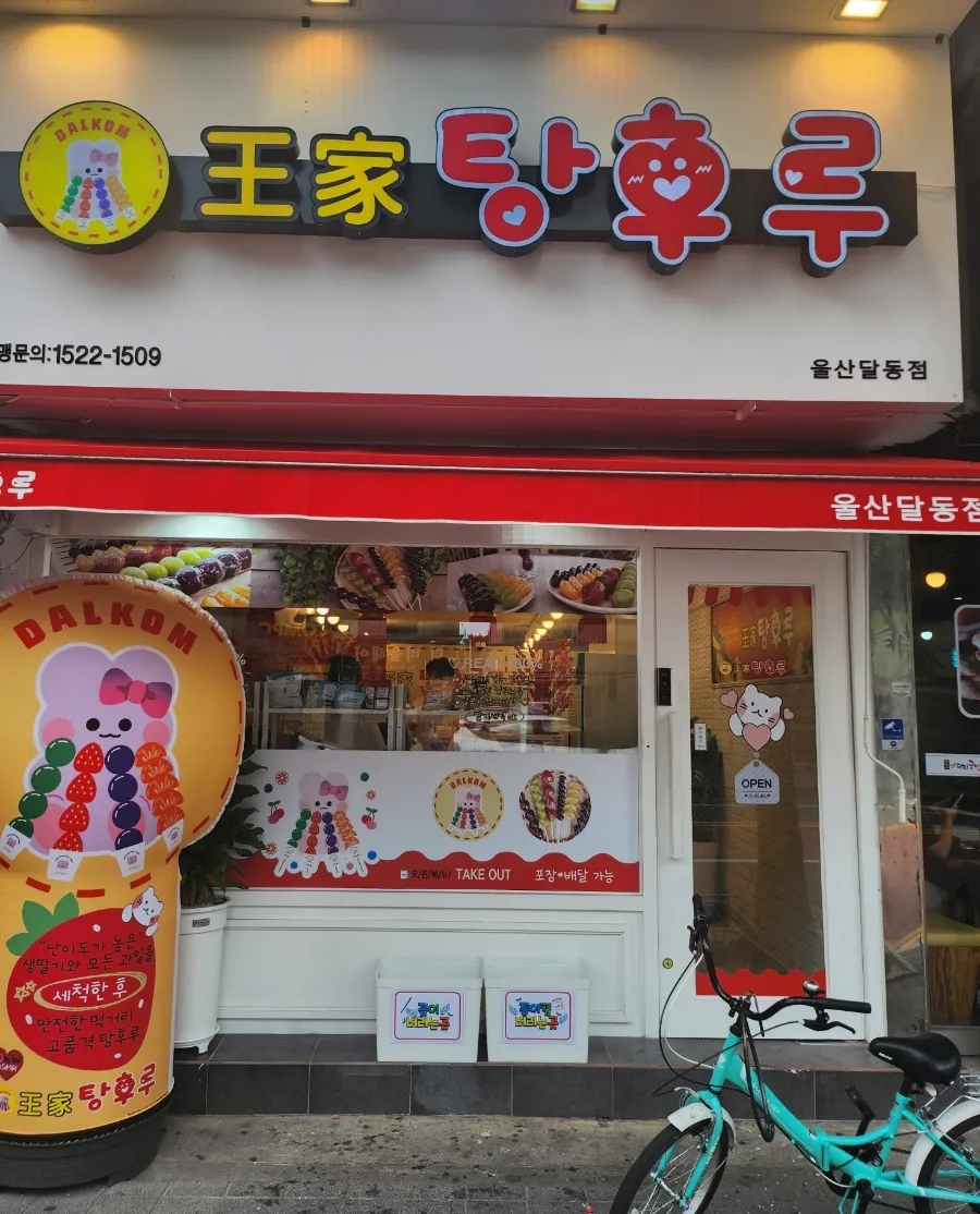 울산 달동에 위치한 가성비 좋고 괜찮은 탕후루 가게 추천드립니다^^ 요즘 아이들이 푹 빠져있어서 요 며칠 계속 방문하게 되었습니다^^ "달콤 왕가 탕후루"입니다^^