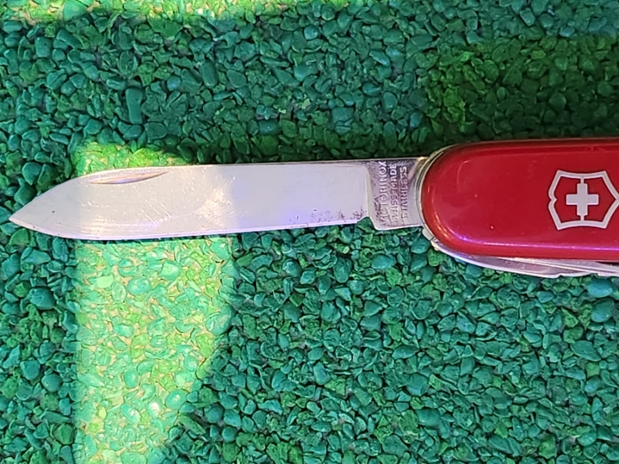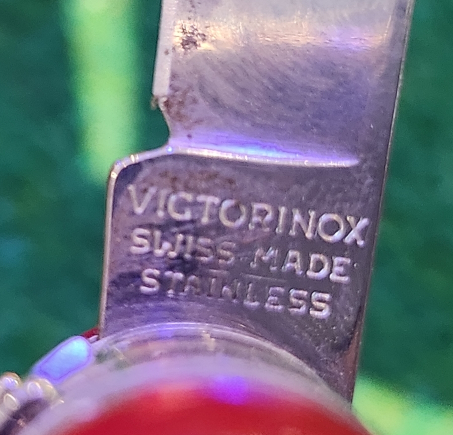 나이프 하단에 각인된 "VICTORINOX SWISS MADE STAINLESS"