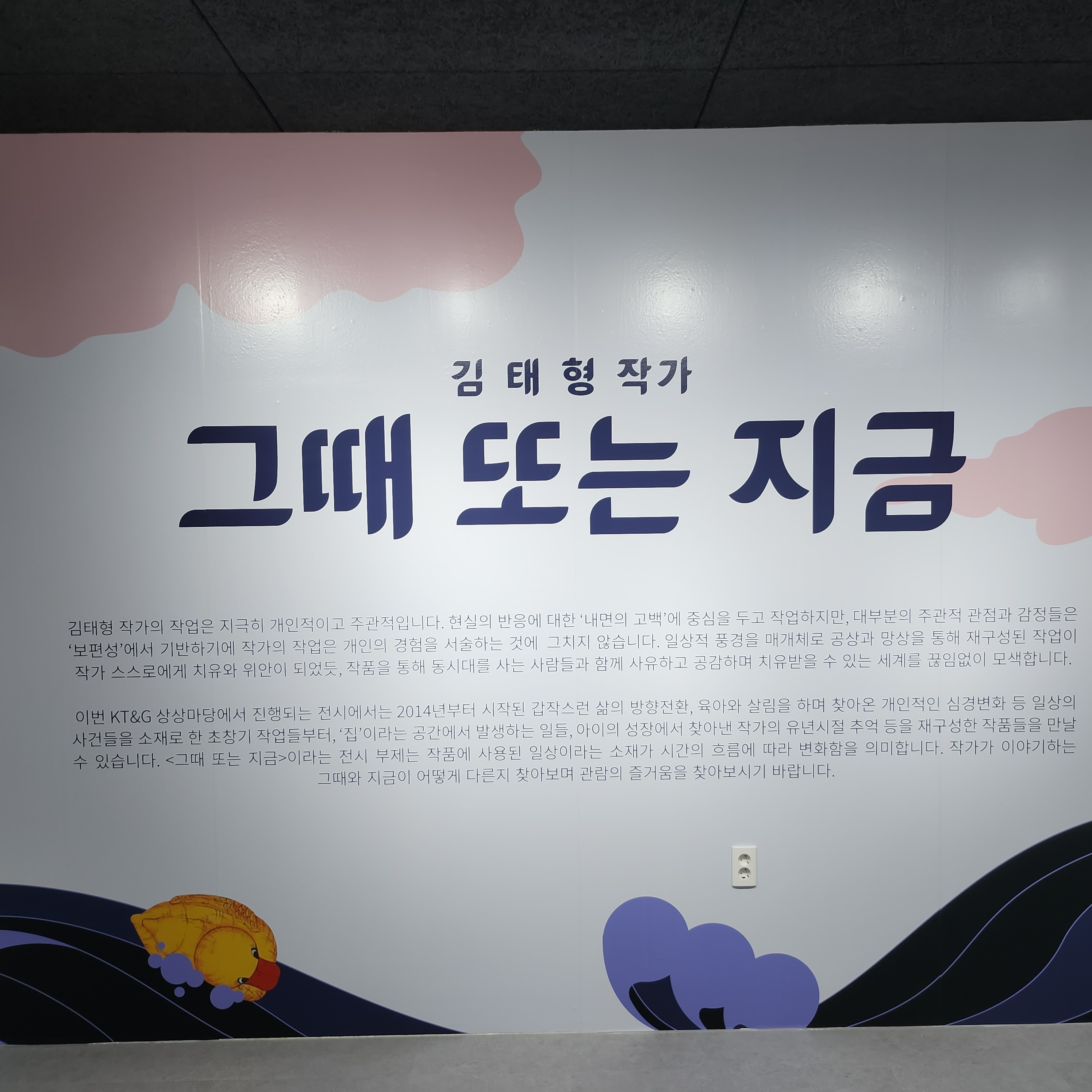 제가 상상마당 춘천스테이를 방문했을 때는 김태형 작가 님의 "그때 또는 지금"이라는 주제의 전시가 진행되고 있었습니다.