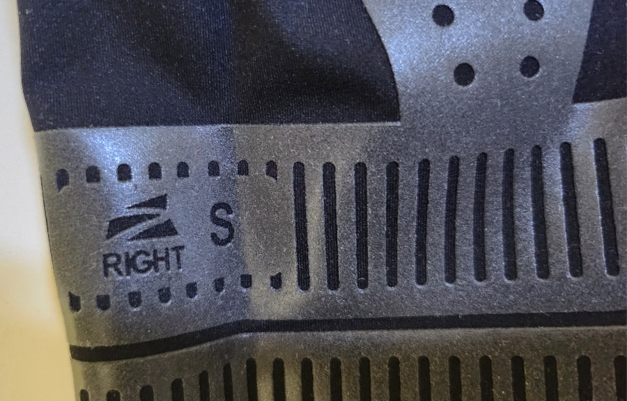 발목 부분에 방향, 사이즈가 표기되어 있습니다.