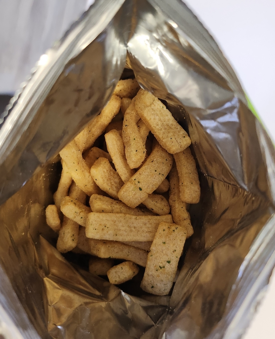 일단 비주얼은 우리가 잘 아는 농심 새우깡이랑은 다르네요... 약간 포스틱 과자 느낌이 났어요ㅎ 중간중간에 청양(?) 맛을 주는 뭔가가 박혀있네요 청량고추 분말이라고 하네요^^