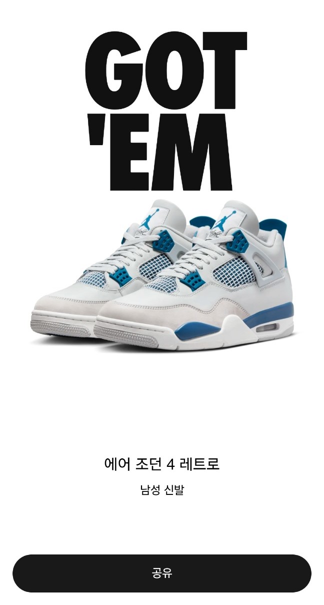 나이키 스니커즈 드로우 성공: 에어조던 4 인더스트리얼 블루