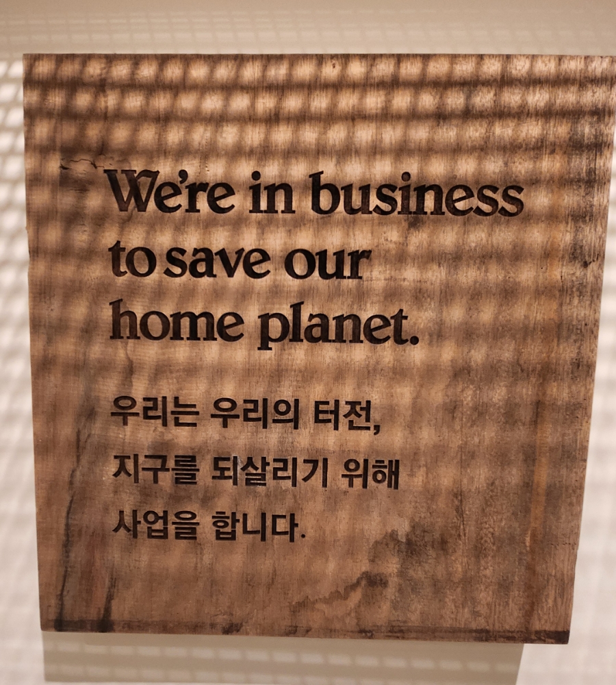매장도 예쁘게 잘 꾸며져 있더군요... 캠핑 또는 아웃도어 느낌이 물씬 났습니다.위 사진의 설명대로 인테리어 리사이클링 소재 사용률이 70프로가 넘는다고도 하네요...역시 친환경 브랜드답습니다. ㅎㅎ