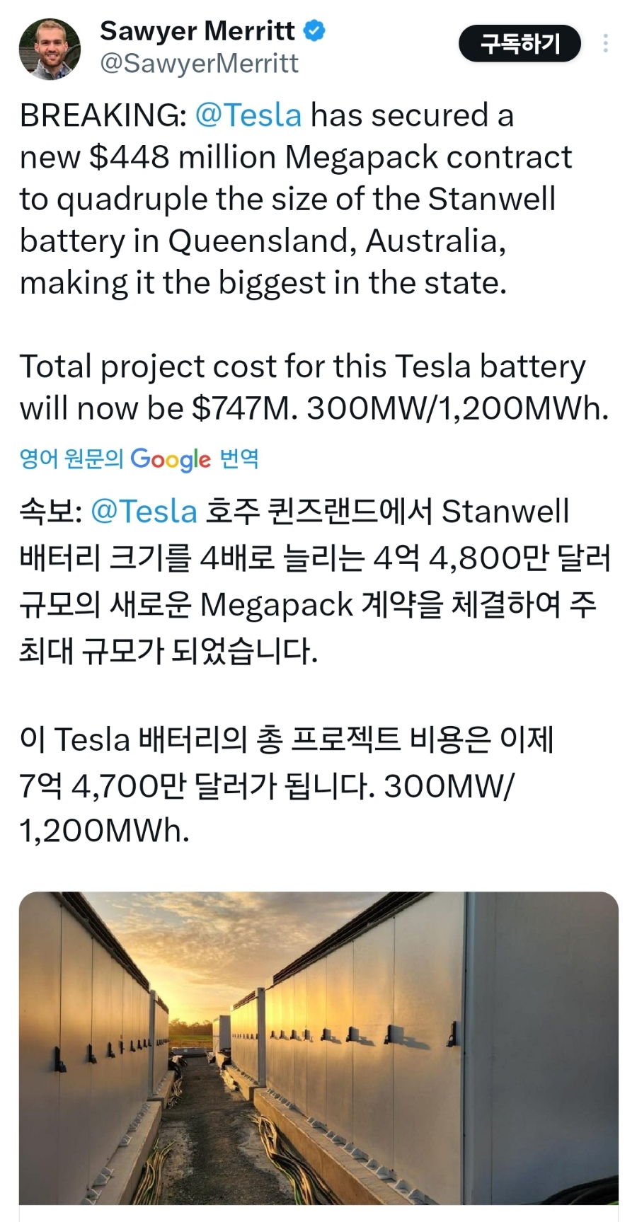 호주, 중국 등에서도 배터리 메가팩 확장 소식이 끊임없이 들려오네요^^