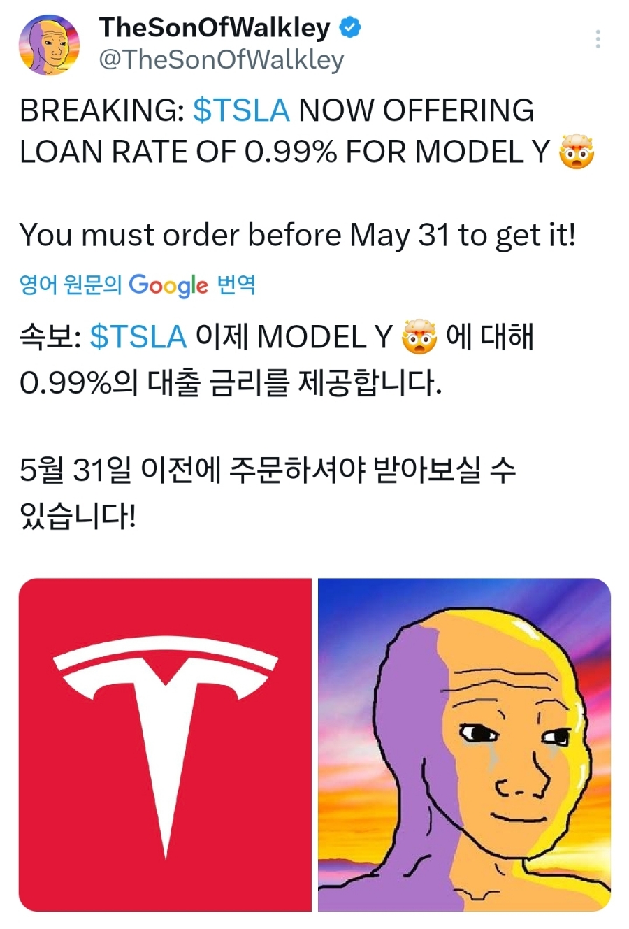 테슬라 모델 Y를 1%도 안되는 대출 금리로 구입을 할 수 있다고 하네요...