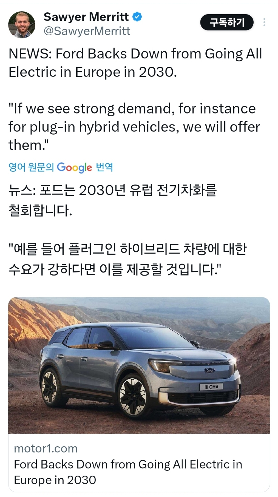 포드가 2023년까지 유럽 전기차화에 대한 계획을 철회하였습니다.