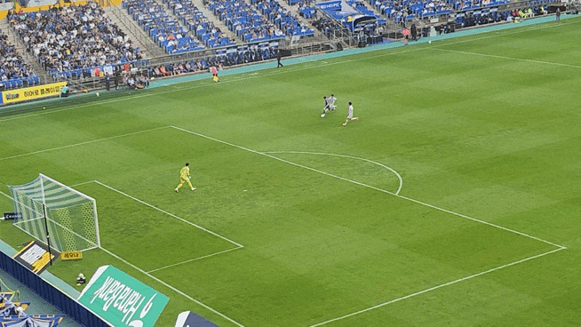 오늘은 정말 정말 아쉽게도... 후반 추가시간에 김천 상무의 기가 막힌 왼발 중거리 슛으로 2:2 동점으로 경기가 끝났습니다.