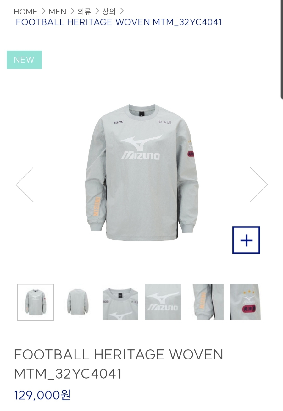 바로 이 제품입니다. 미즈노 풋볼 라인이고요.... 헤리티지 우븐 소재입니다.